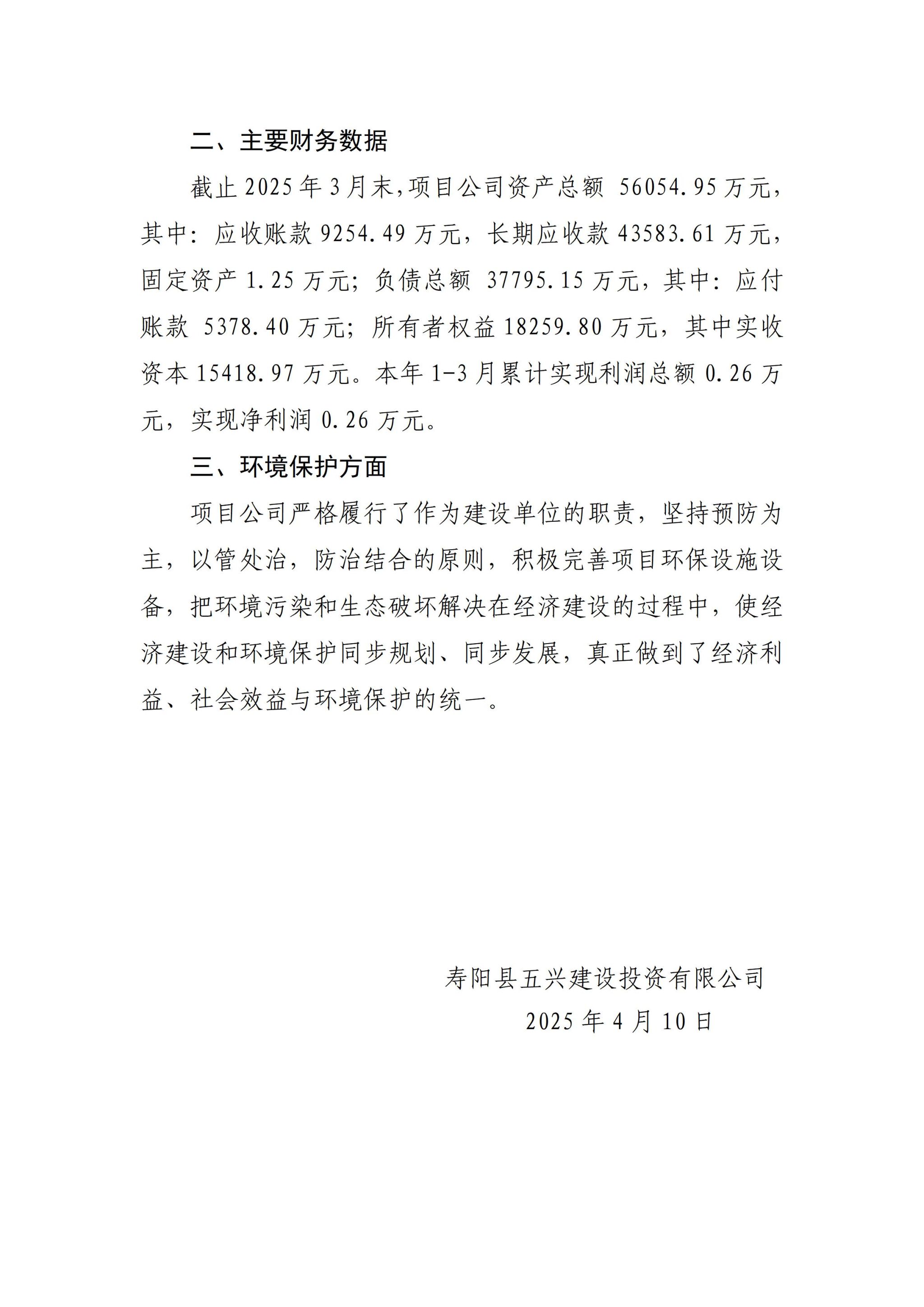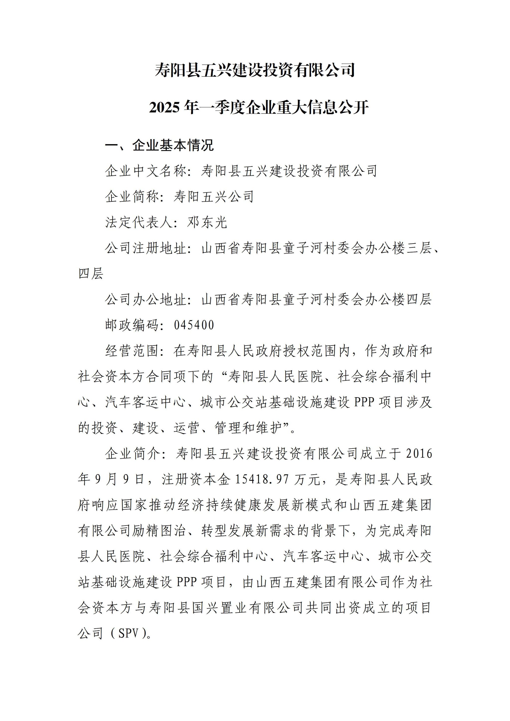 寿阳县五兴建设投资有限公司2025年一季度企业重大信息公开