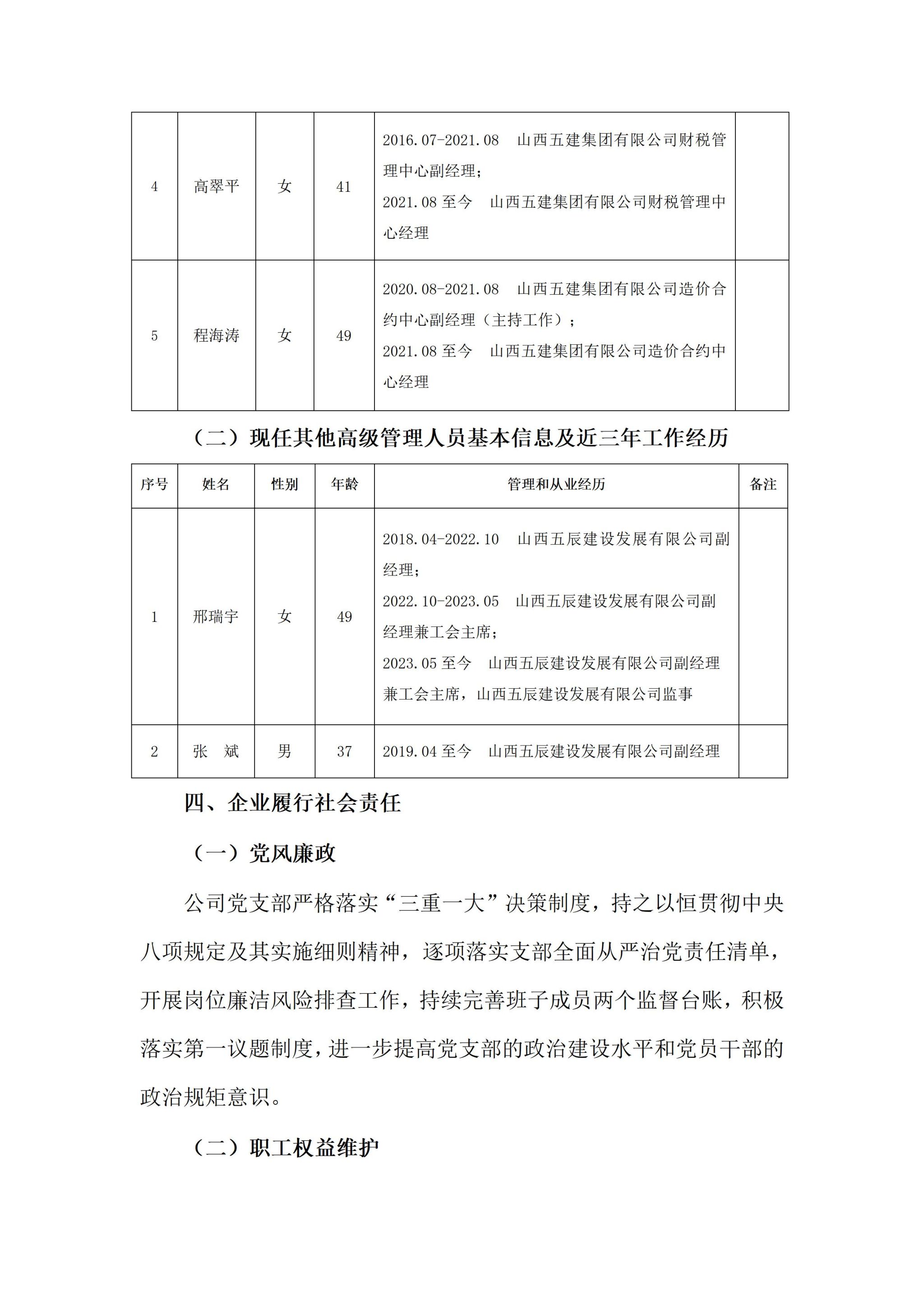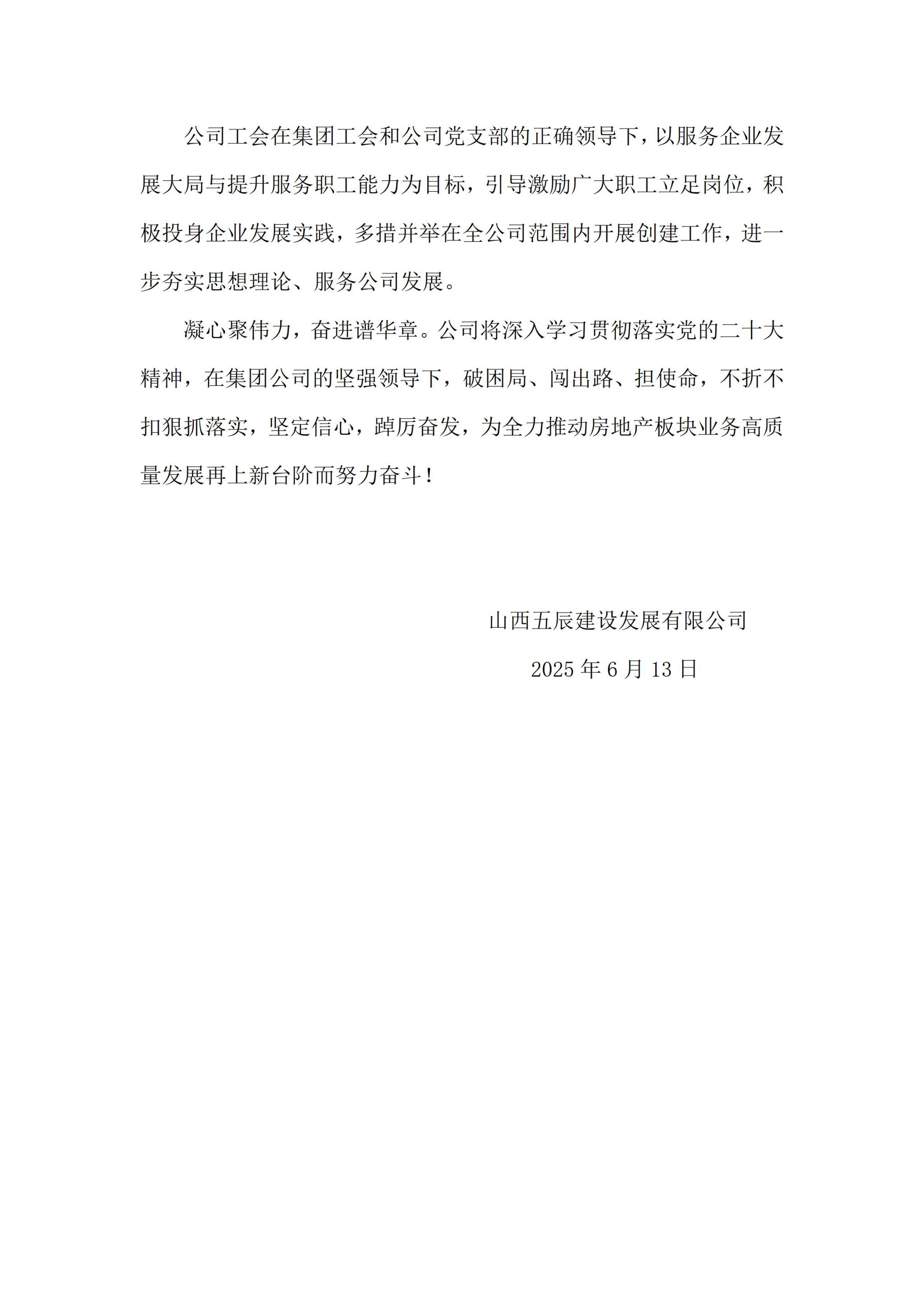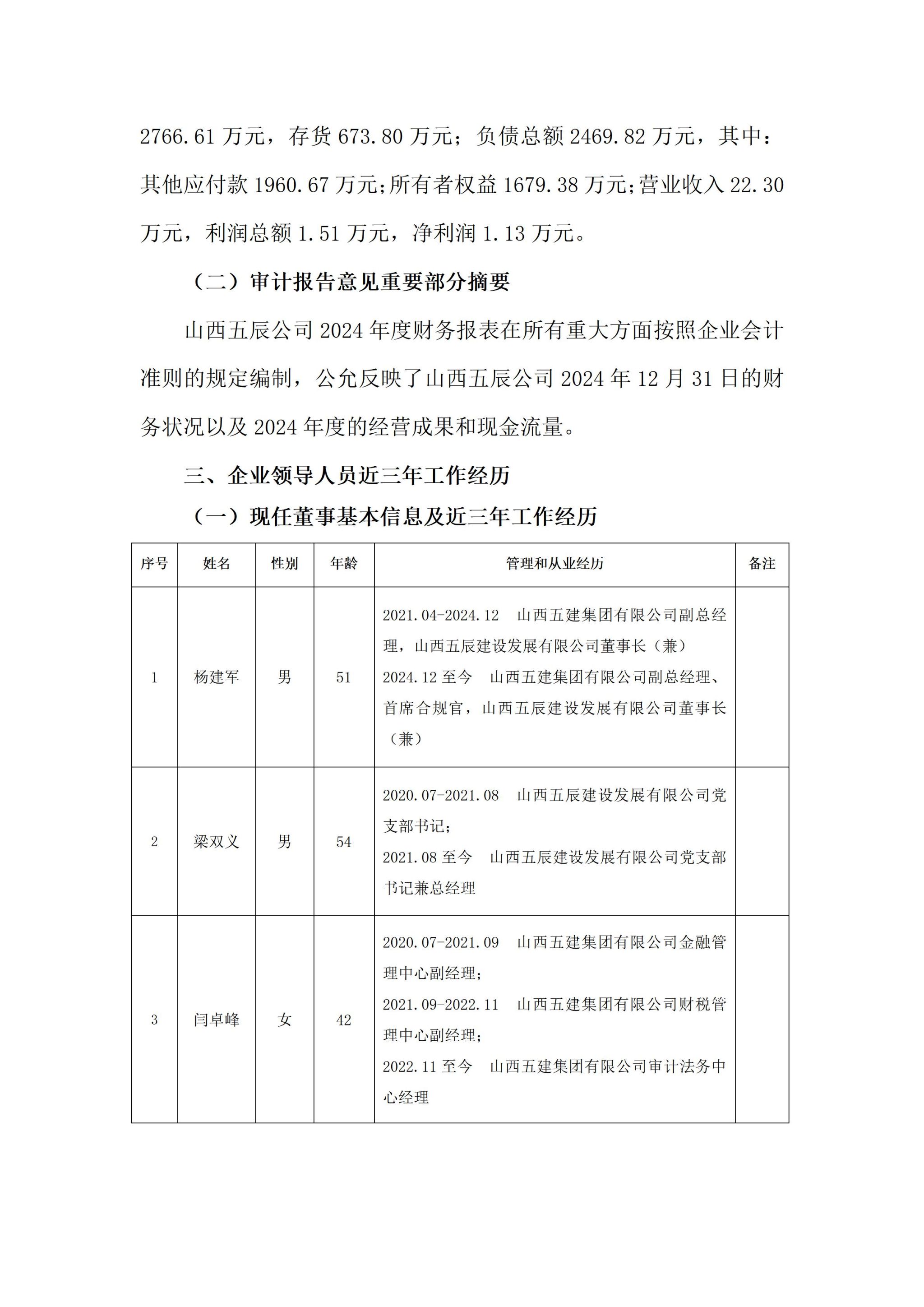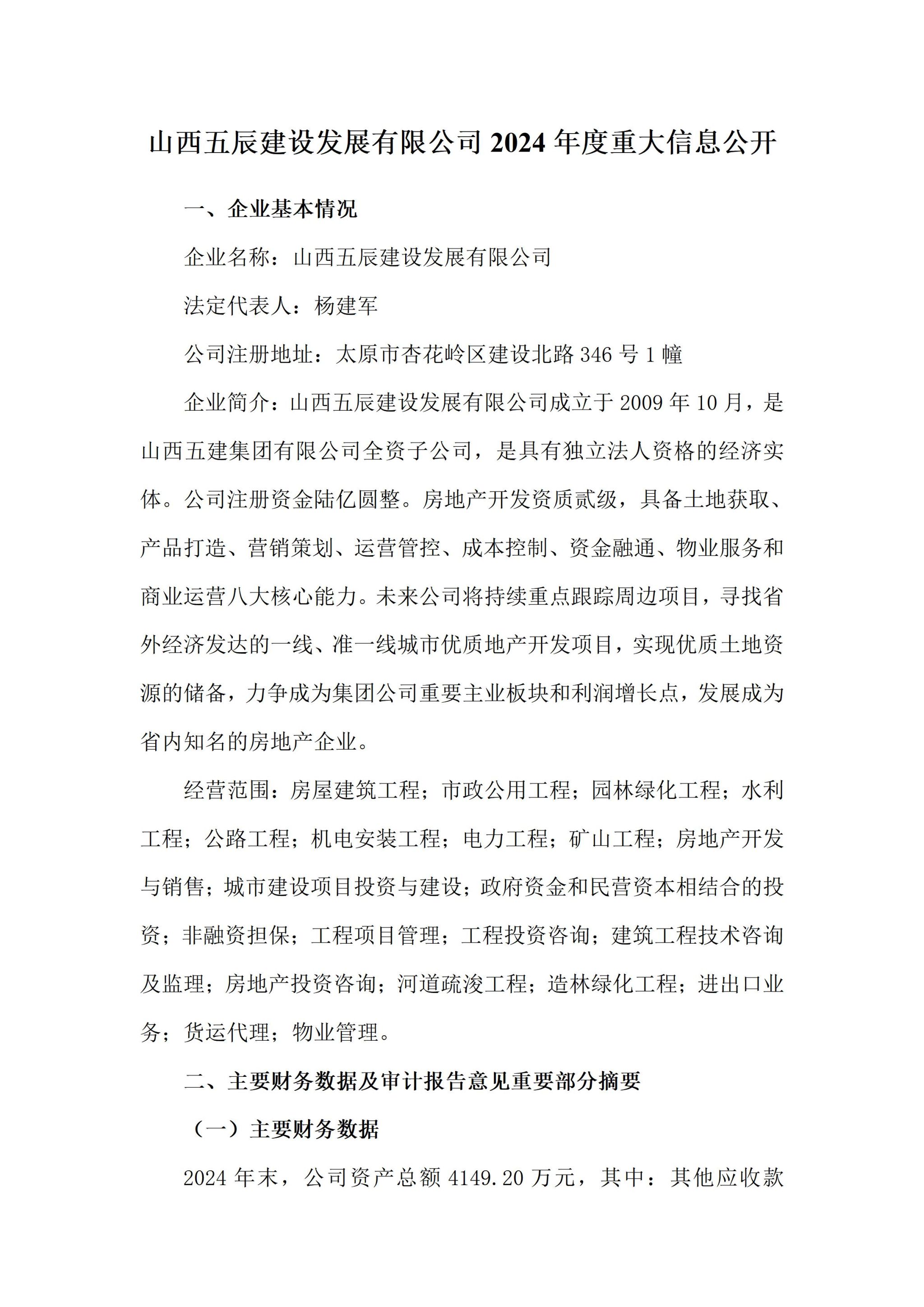 山西五辰建设发展有限公司2024年度企业重大信息公开