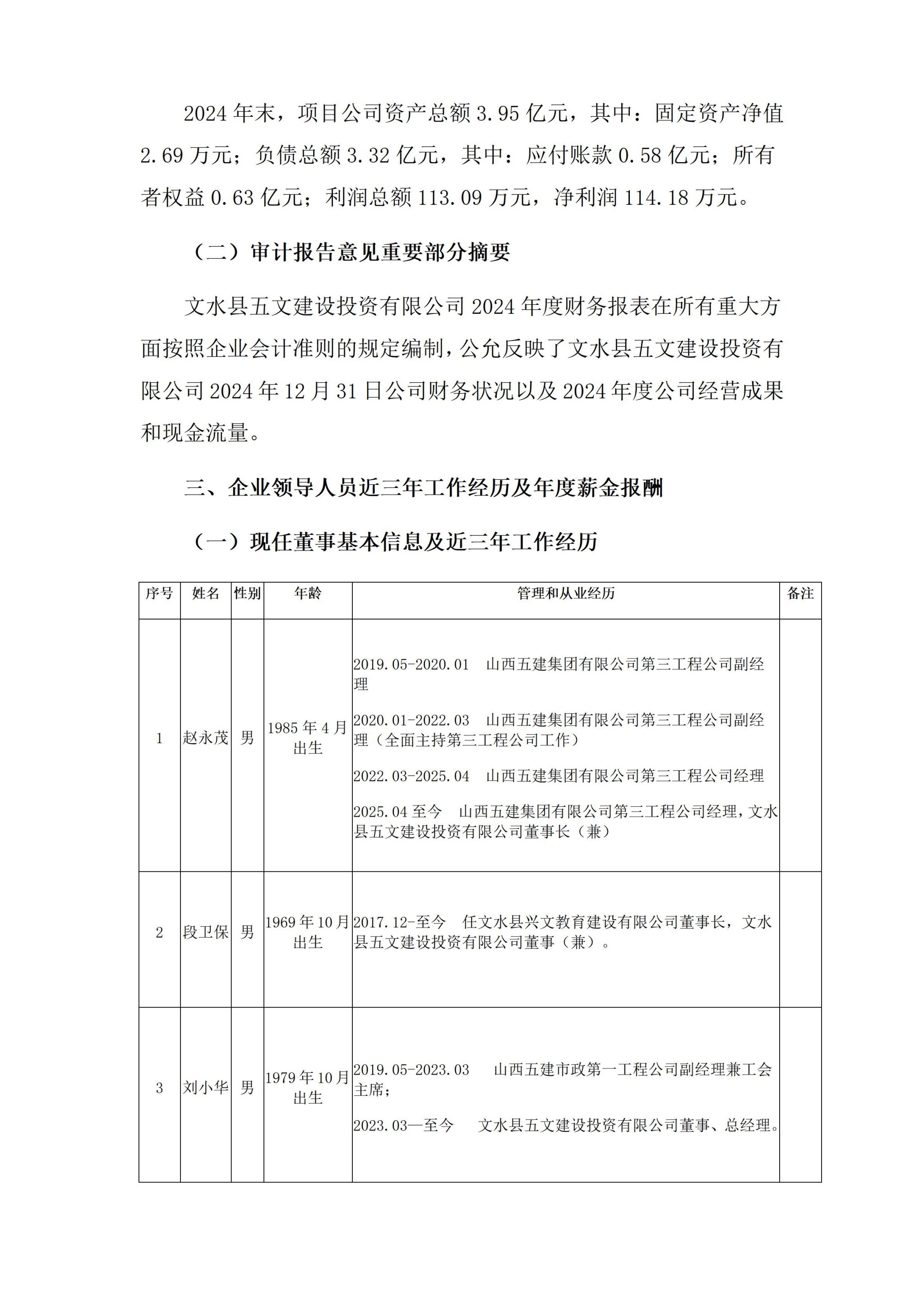 文水县五文建设投资有限公司2024年企业重大信息公开