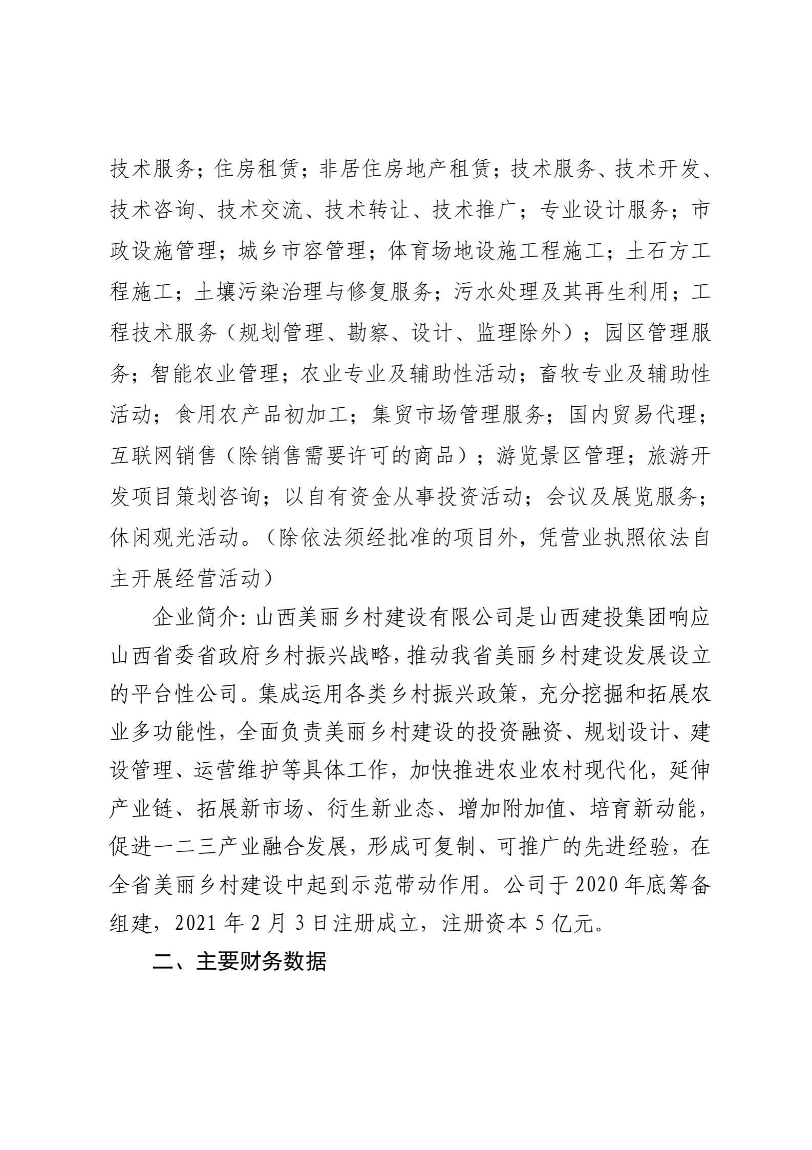 山西美丽乡村建设有限公司2024年度重大信息公开