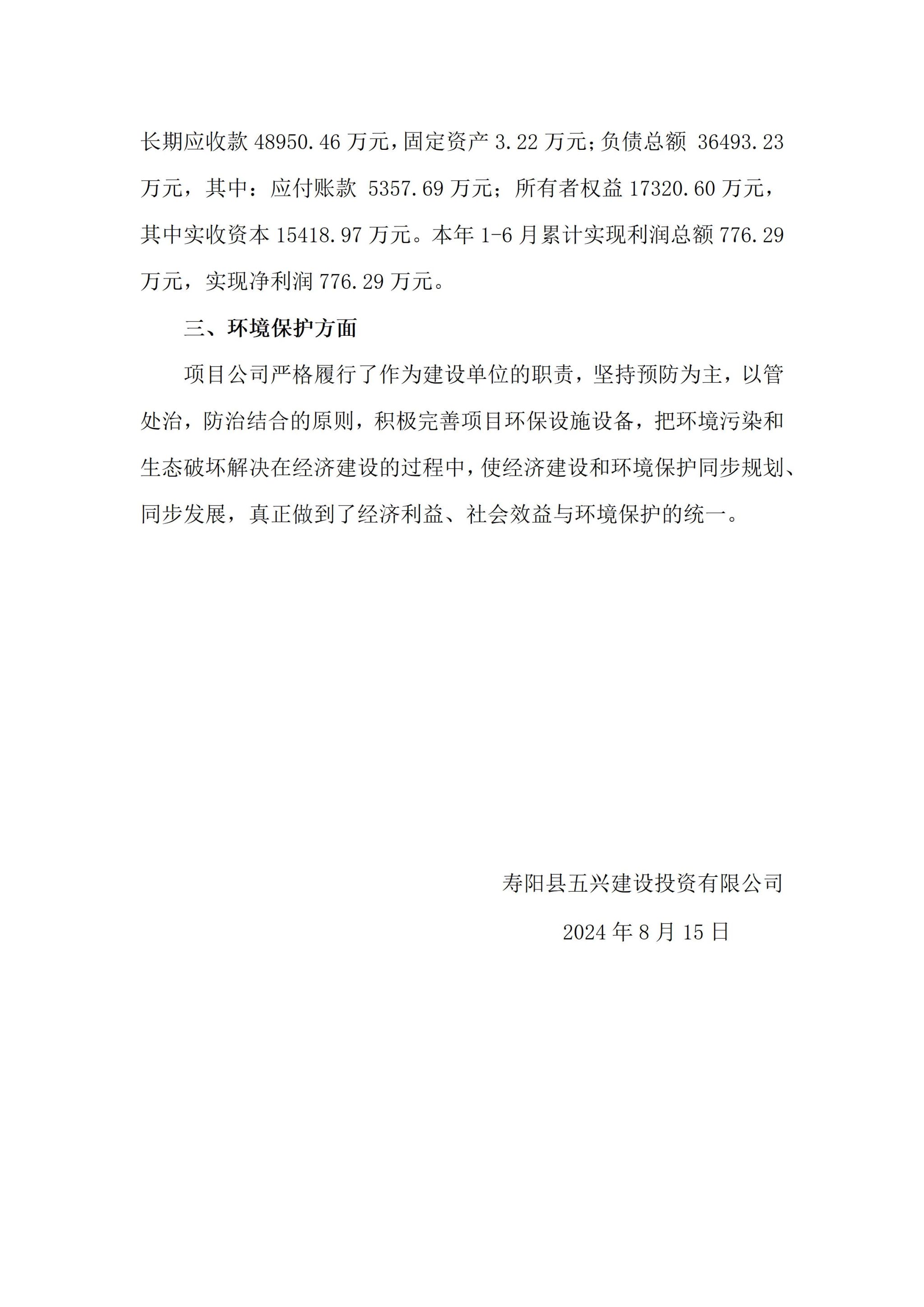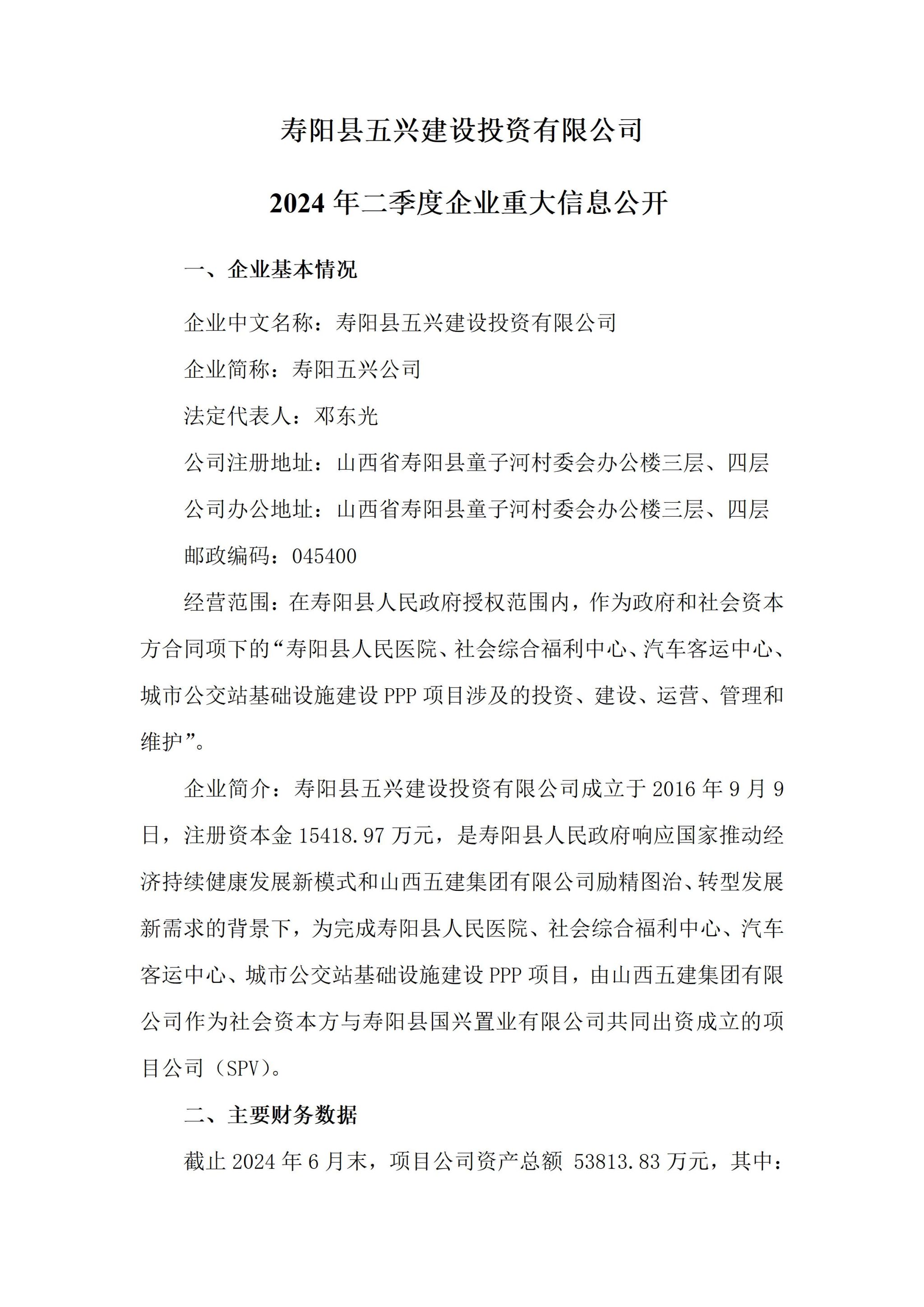 寿阳县五兴建设投资有限公司2024年二季度企业重大信息公开
