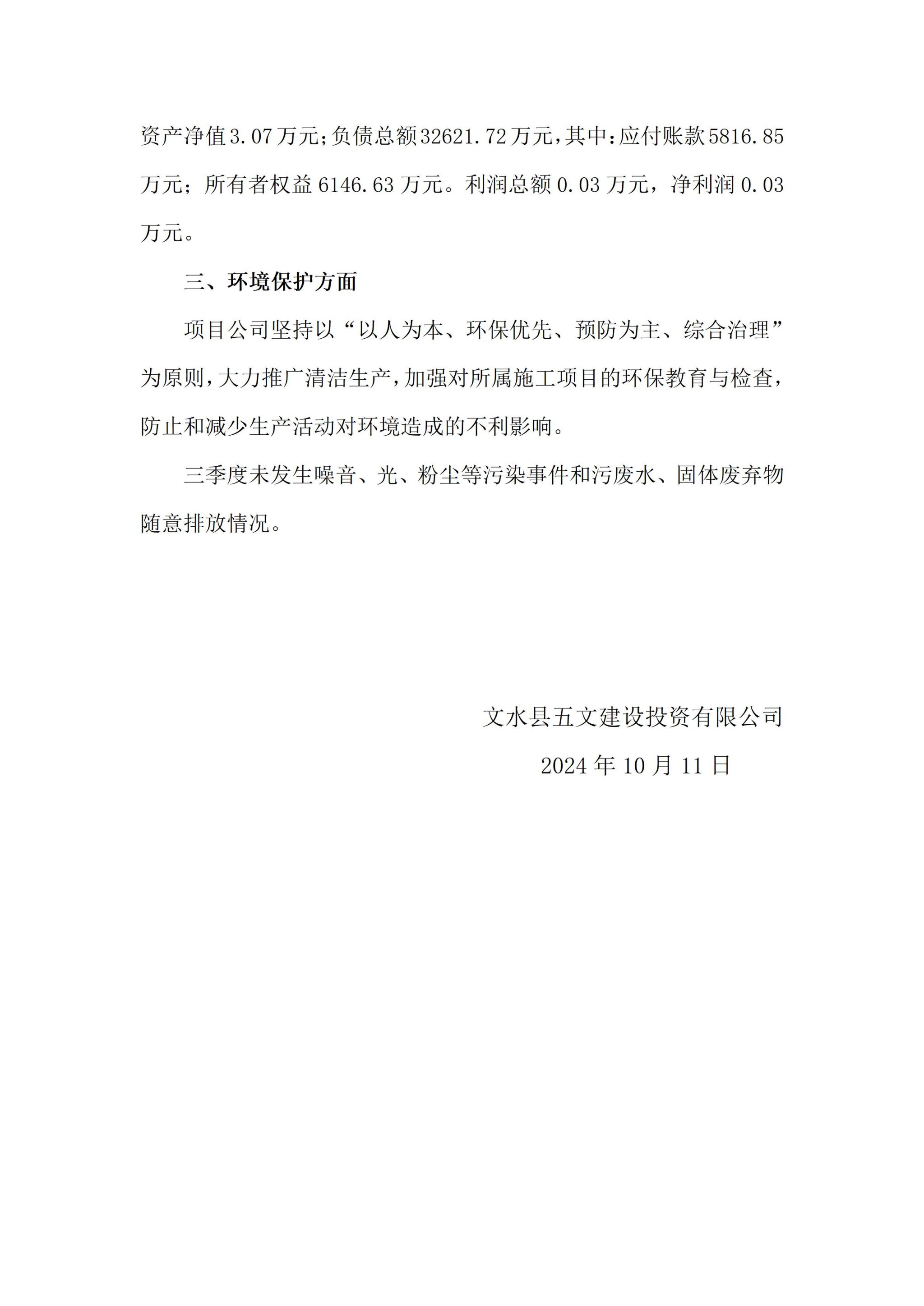 文水县五文建设投资有限公司2024年三季度企业重大信息公开