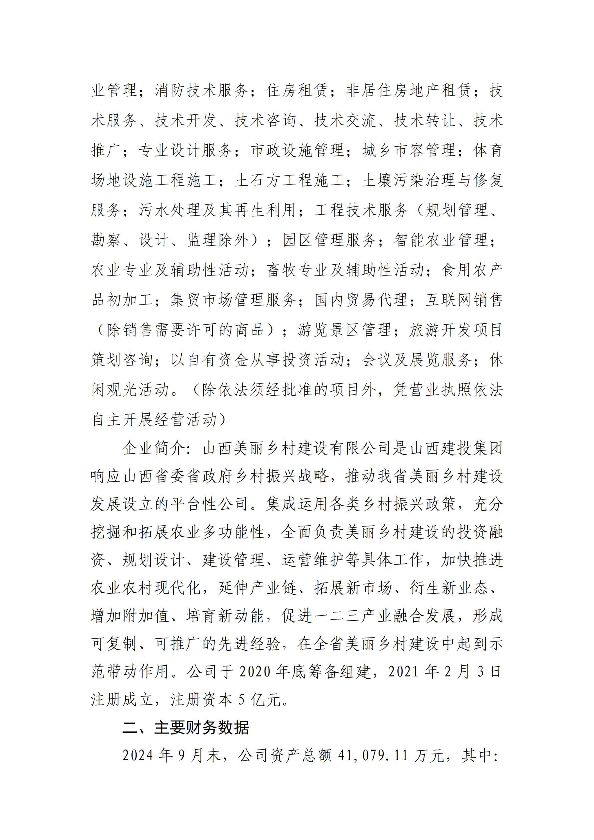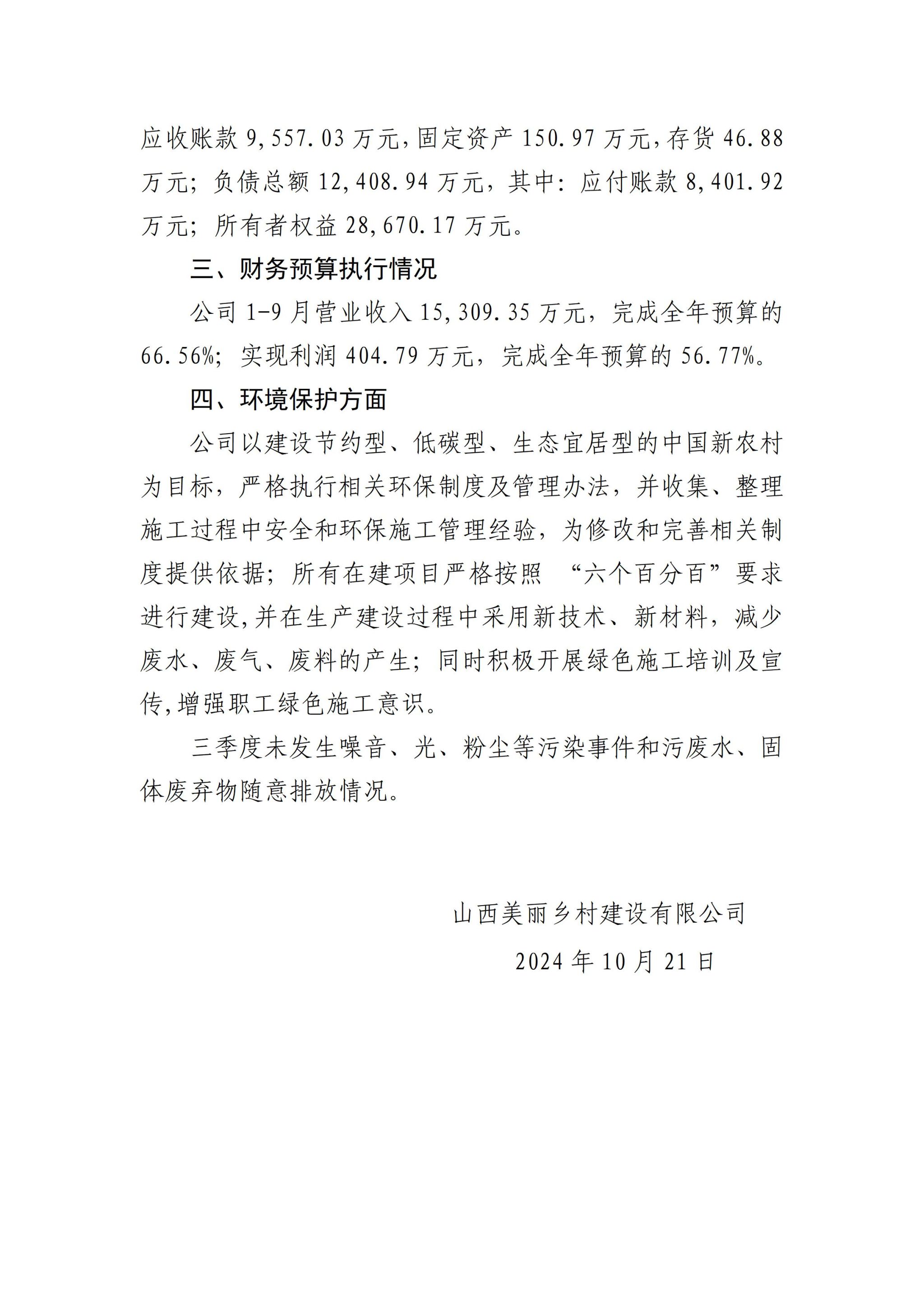 山西美丽乡村建设有限公司2024年三季度企业重大信息公开